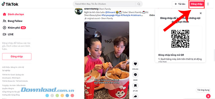 Bước 1: Mở TikTok trong trình duyệt thường dùng và Đăng nhập vào tài khoản TikTok của mình.