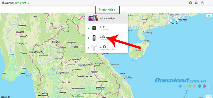 Bước 2: Danh sách thiết bị sẽ hiện lên, mọi người cần chạm vào iPhone bị khóa của mình.