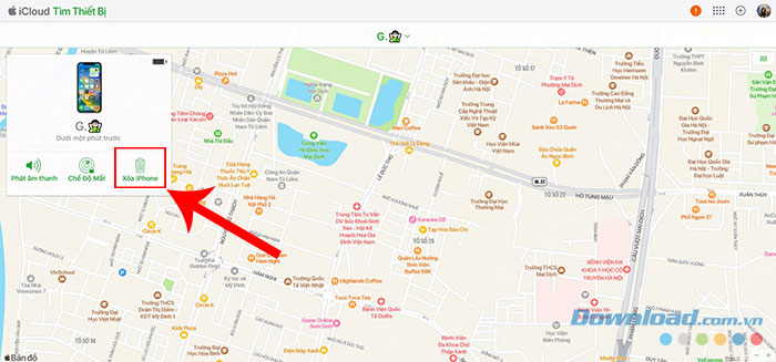 Bước 4: Chọn iPhone của mình và nhấn Xóa (biểu tượng thùng rác).