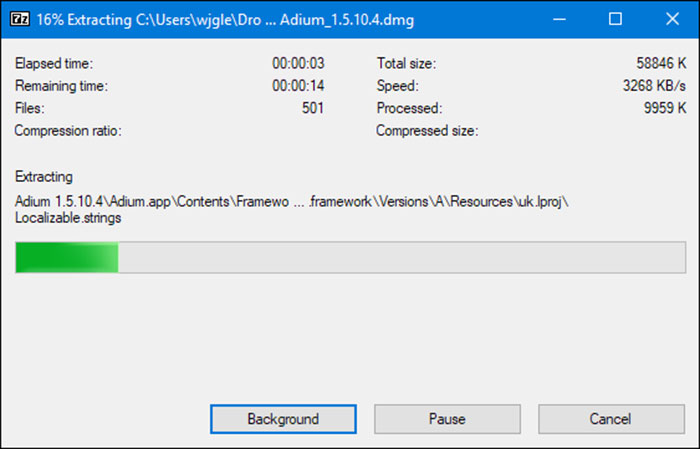 Phiên bản miễn phí của trình giải nén DMG 7-Zip có một số hạn chế là chỉ có thể giải nén 5 tệp cùng một lúc. Nếu 7-Zip không thể giải nén tệp DMG thì nên chuyển sang dùng thử DMG Extractor.