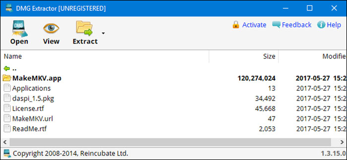 Sau khi cài đặt DMG Extractor, tất cả những gì mọi người phải làm là nhấp đúp vào tệp DMG để mở nó lên, duyệt các tệp ngay trong cửa sổ DMG Extractor nếu chỉ muốn xem nội dung bên trong tệp DMG.