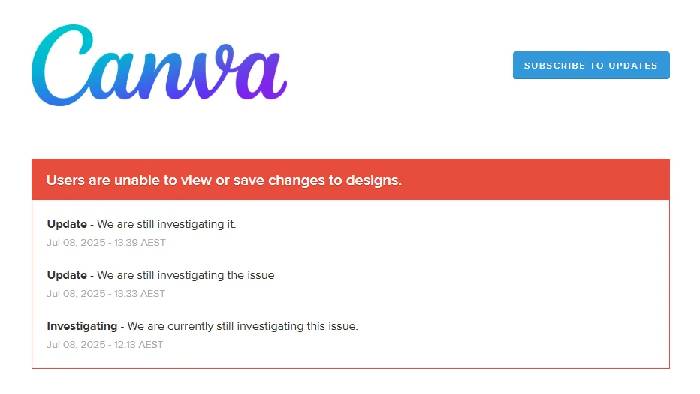 Đôi khi việc thiết kế gặp gián đoạn có thể do lỗi từ chính Canva. Mọi người có thể dễ dàng kiểm tra trạng thái hoạt động của Canva tại https://www.canvastatus.com/.