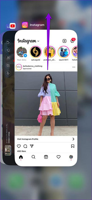 Đối với những người sử dụng iPhone, hãy vuốt lên từ cuối màn hình hoặc nhấn nút màn hình chính hai lần để hiển thị trình chuyển đổi ứng dụng. Xác định vị trí ứng dụng Instagram và vuốt lên để đóng. Cuối cùng, mở lại ứng dụng Instagram và thử đăng nhập vào tài khoản của mình.