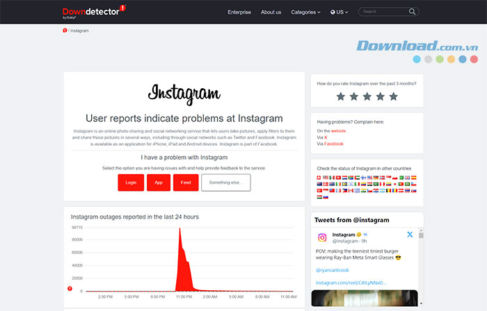 Máy chủ của Instagram có thể đang gặp sự cố khiến người dùng không thể đăng nhập vào tài khoản Instagram của mình. Các trang web như Downdetector giúp theo dõi những lần ngừng hoạt động dịch vụ như vậy của nhiều nhà cung cấp, bao gồm cả Instagram. Mọi người có thể truy cập Downdetector trên PC hoặc thiết bị di động của mình để xem đó có phải là sự cố phía máy chủ gây ra lỗi đăng nhập Instagram hay không.