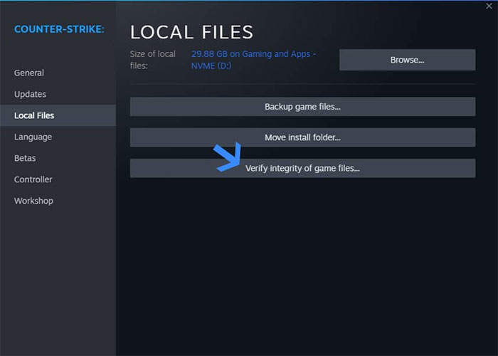 Nếu các phương pháp trên không hiệu quả thì vấn đề có thể nằm ở thư mục cài đặt tệp trò chơi. Vì vậy, game thủ nên xác minh các tập tin của trò chơi này như sau: