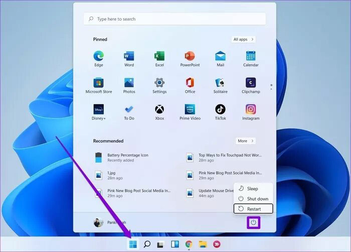 Để khởi động lại PC, mọi người có thể sử dụng chuột ngoài hoặc bàn phím. Để khởi động lại PC bằng bàn phím, hãy nhấn nút Start, sử dụng phím mũi tên chọn Power và nhấn phím Enter. Bây giờ, hãy chọn Restart từ menu và nhấn Enter một lần nữa.