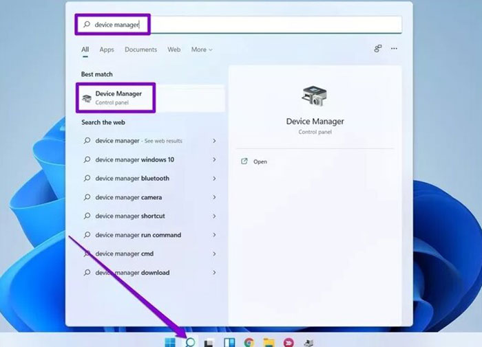 Bước 1: Mở menu Start, nhập device manager và nhấn Enter.