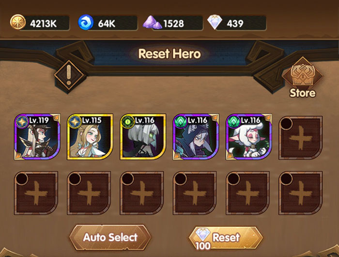 Khi điều này xảy ra, hãy đi đến Rickety Cart để có thể reset các anh hùng cấp Common của mình. Sau đó, các tài nguyên hữu ích mà mọi người nhận được từ quá trình này có thể được dùng để nâng cấp các anh hùng cấp cao hơn và trang bị cho họ những vật phẩm của anh hùng Common vừa reset.