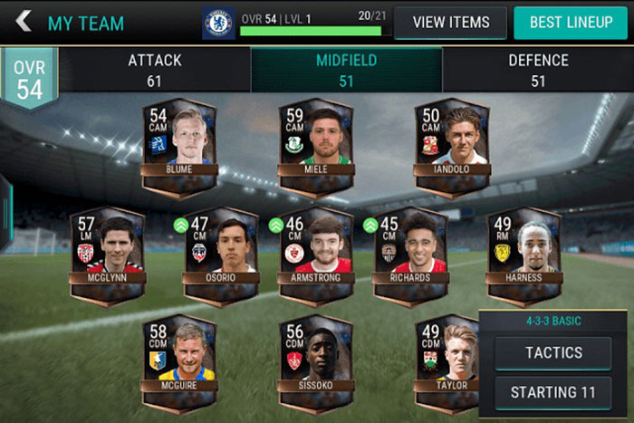 Tuy nhiên, đừng chỉ thay thế cầu thủ một cách mù quáng, mà hãy nhớ chỉ hoán đổi những thẻ có biểu tượng mũi tên hướng lên màu trắng ở góc trên cùng bên phải. Mũi tên màu trắng cho biết cầu thủ đó hiện tại có thể được nâng cấp và cầu thủ tốt hơn sẽ có sẵn ở vị trí của anh ta. Đây là một bước quan trọng để xây dựng một đội mạnh hơn và tăng xếp hạng tổng thể.
