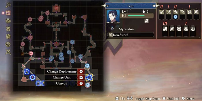 Ví dụ, trong bản đồ trên, tốt nhất nên xếp Felix ở phía bên phải của bản đồ, vì anh ta mạnh nhất trước những đối thủ đó và yếu hơn nhiều so với quân phía bên trái. Bằng cách lập kế hoạch chiến đấu cẩn thận, người chơi có thể xoay chuyển tình thế có lợi cho mình trong suốt nhiệm vụ.