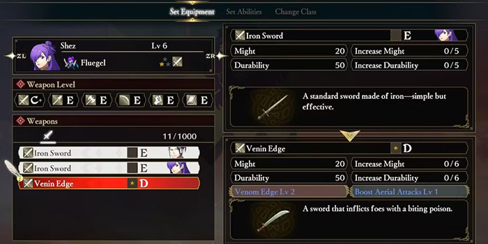 Kiểm tra cấp độ vũ khí của nhân vật cũng rất quan trọng để sử dụng hiệu quả từng loại vũ khí, vì cấp độ càng cao, nhân vật càng có thể tấn công liên tiếp, gây sát thương nhiều hơn. Đảm bảo mỗi nhân vật có đủ bình thuốc chữa lành và vũ khí thứ hai (trong trường hợp độ bền của vũ khí chính thấp) để bảo vệ họ trong suốt nhiệm vụ.
