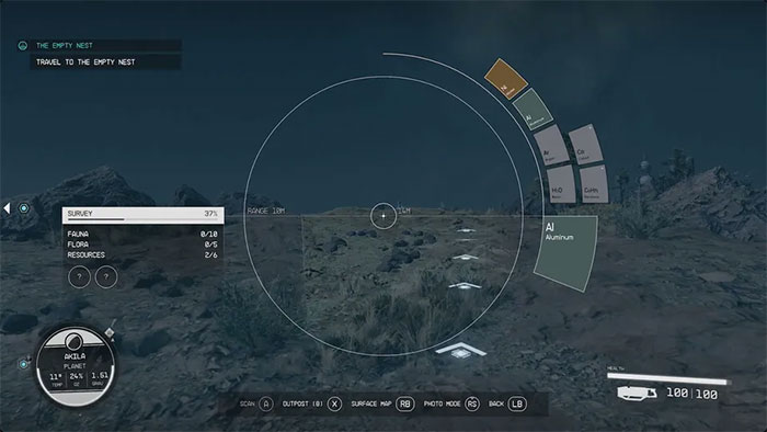 Khi đến một hành tinh hoặc một con tàu để thực hiện mục tiêu nhiệm vụ tiếp theo, sẽ có các điểm đánh dấu trên HUD cho (các) mục tiêu và bất kỳ mục tiêu tùy chọn bổ sung nào. Tuy nhiên, sẽ không có cách nào để phân biệt giữa những thứ đó. Kéo scanner lên bằng LB trên console hoặc F trên PC cho phép game thủ biết chính xác mỗi mục tiêu đại diện cho điều gì.
