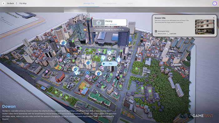 Sau khi tạo và đặt tên cho Zois, người chơi sẽ cần chọn một thành phố để sinh sống, mỗi thành phố mang đến một nét thẩm mỹ, văn hóa và trải nghiệm khác nhau trên thế giới.