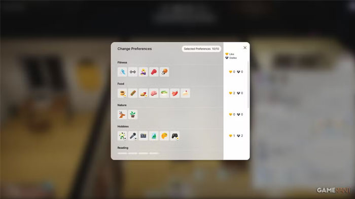 Mỗi Zoi có thể có tối đa 10 sở thích và sở ghét. Ví dụ, nếu một Zoi thích chơi game, họ sẽ chơi thường xuyên hơn và cảm thấy vui vẻ khi làm điều đó. Họ cũng có thể nói chuyện Zoi khác về niềm đam mê của mình. Để có trải nghiệm dễ dàng hơn, hãy chọn nhiều sở thích hơn để Zois trở nên hạnh phúc hơn và thường xuyên làm những việc có ích.