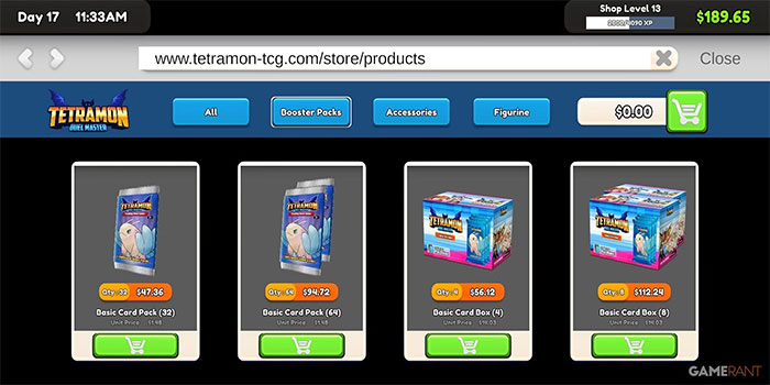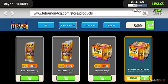 Trong giai đoạn đầu của trò chơi, người chơi sẽ kiếm được phần lớn tiền của mình bằng cách bán các gói thẻ. Tuy nhiên, sau một thời gian, người chơi sẽ bắt đầu kiếm được nhiều tiền hơn bằng cách bán các thẻ bài riêng lẻ. Để làm được điều này, người chơi phải mua một bàn chơi bài. Những bàn này có giá 400 đô la và có thể mở khóa khi người chơi đạt cấp độ 3 trong cửa hàng.