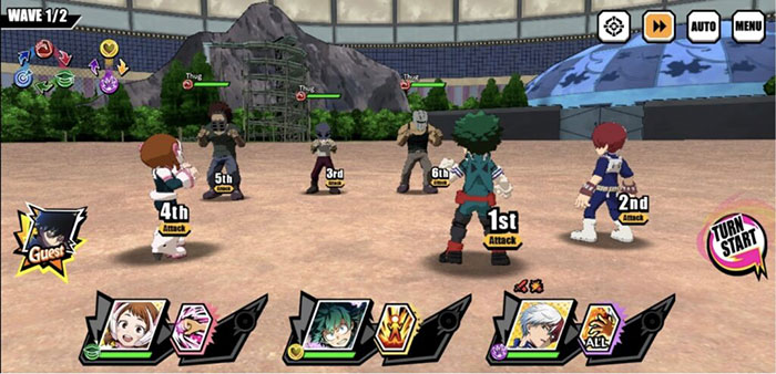 Đây là sự kết hợp tốt nhất cho những người chơi mới bắt đầu vì nó cung cấp lượng sát thương cực lớn, dành cho những ai yêu thích phong cách chơi tấn công. Todoroki sẽ đóng vai trò là kẻ gây sát thương chính nhờ có kỹ năng AoE, trong khi kỹ năng của Deku sẽ tăng tốc độ tấn công của cả nhóm lên 20% bằng cách kích hoạt với chuỗi kỹ năng. Cuối cùng, Uraraka sẽ hoạt động như một người kết liễu đối thủ.