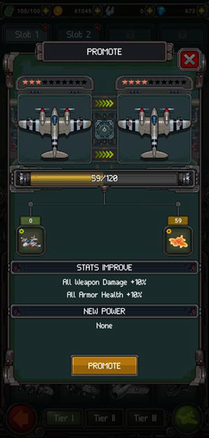 Promote cung cấp cho máy bay cải tiến tổng thể. Bằng cách tăng thứ hạng, máy bay sẽ nhận được những khẩu súng bổ sung, hỗ trợ trong các nhiệm vụ