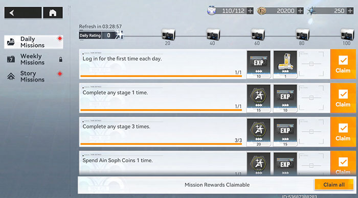 Người chơi mới có thể ngạc nhiên về số lượng tài nguyên mà Aether Gazer cung cấp cho mình khá ít. Mức tăng cũng trở nên thấp khi game thủ đạt đến một ngưỡng nhất định. Đừng lo lắng vì nhiệm vụ hàng ngày sẽ giải cứu mọi người khỏi “cơn đói” tài nguyên. Đây là những nhiệm vụ dễ dàng và đơn giản để hoàn thành, đòi hỏi ít hoặc không cần nỗ lực nhưng cung cấp lượng tài nguyên dồi dào.