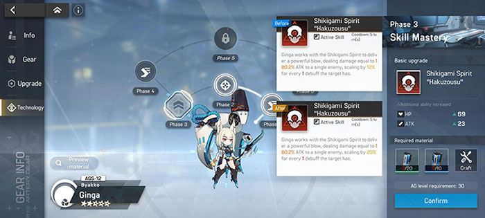Thông qua mục công nghệ trong game, mọi người có thể tăng thuộc tính của chỉ số cụ thể hơn, nhưng phải mất một số chìa khóa có thể nhận được thông qua thu thập dữ liệu từ các trận chiến.