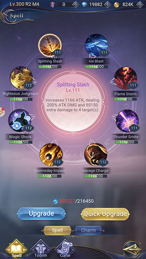 Nâng cấp các phép thuật này bằng cách sử dụng Mana, giúp nâng cao Cấp độ Phép thuật. Người chơi có thể nhận thêm Mana từ Thử thách hàng ngày, Mua hàng, Nhiệm vụ tiền thưởng và Sự kiện.