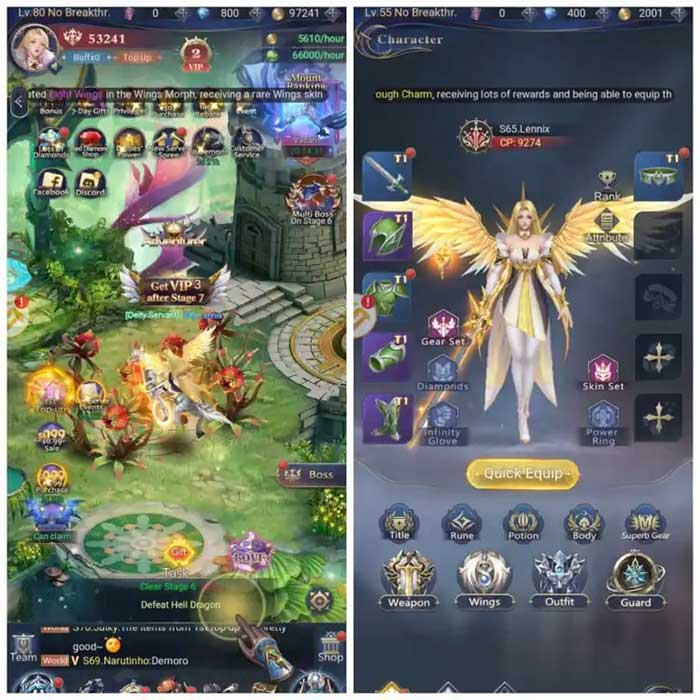 Bắt đầu trò chơi bằng cách chọn loại vai nhân vật muốn nhập vai. Nhấp vào biểu tượng nhân vật từ phía dưới cùng bên trái của màn hình, sau đó trang bị thiết bị và trở nên mạnh mẽ hơn. Mở khóa Nguyên tố và War Soul của nhân vật sau khi đạt đến R3 M4 và R3 M5 tương ứng. Trang bị nhanh cho nhân vật và tăng Cngay lập tức.