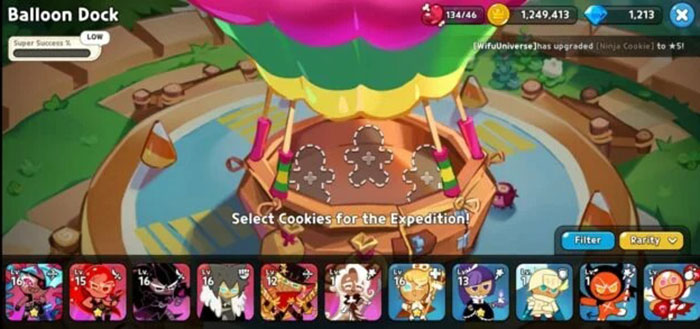 Khi đã xây dựng lâu đài Cookie của mình và mở khóa Balloon Dock, hãy đảm bảo tận dụng thời gian để sử dụng nó nhiều nhất có thể. Người chơi có thể gửi Cookie thuộc nhóm của mình, nhân vật hiện không sử dụng trong đội hình chiến đấu tới Hot Air Balloon để thu thập Soulstone, xu, Topping và nhiều vật phẩm khác. Đây là một cách sử dụng tuyệt vời để tận dụng những Cookie nhàn rỗi và nhận được nhiều chiến lợi phẩm cho việc phát triển nhân vật và vương quốc.