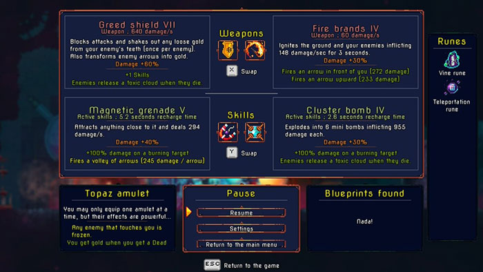 Mục tiêu của bạn không quá rõ ràng trong lần đầu tiên khám phá nhà tù và các con đường phân nhánh của nó. Lúc đầu, bạn sẽ băn khoăn không biết nên đi đâu và làm gì, lưu tiến trình ở đâu và làm cách nào để biết liệu bạn đã thực hiện được chưa. Tương tự như những Roguelites khác, cái chết đang đến gần và việc tiến về phía trước là điều cần thiết. Người có thẩm quyền trong nhiệm vụ nắm quyền đó là The Collector.