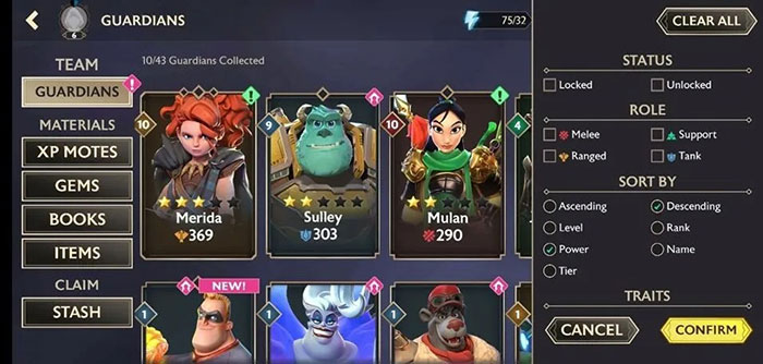 Một số Guardian được cung cấp miễn phí cho người chơi khi bắt đầu, nhưng không phải tất cả đều cần phải tăng cấp. Nếu người chơi có thể hoàn thành một số cuộc chạm trán mà không cần lên cấp cho những Guardian, thì việc tiết kiệm tài nguyên thay vì sử dụng chúng sẽ rất hữu ích.