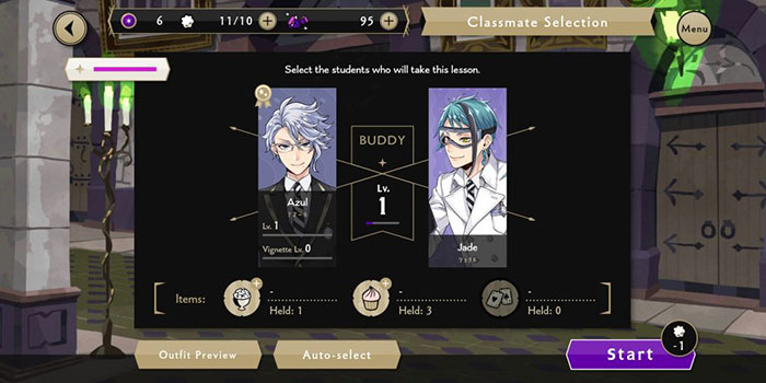 Chọn sinh viên mà mình thích nhất và sẽ nhận được họ trong bữa tiệc bắt đầu miễn phí, sau khi sử dụng Dark Mirror lần đầu tiên. Ngay cả khi thay đổi quyết định sau đó, mọi người luôn có thể mua phiên bản thông thường của một nhân vật mà mình muốn bằng cách sử dụng Thaumarks, đơn vị tiền tệ miễn phí của trò chơi.