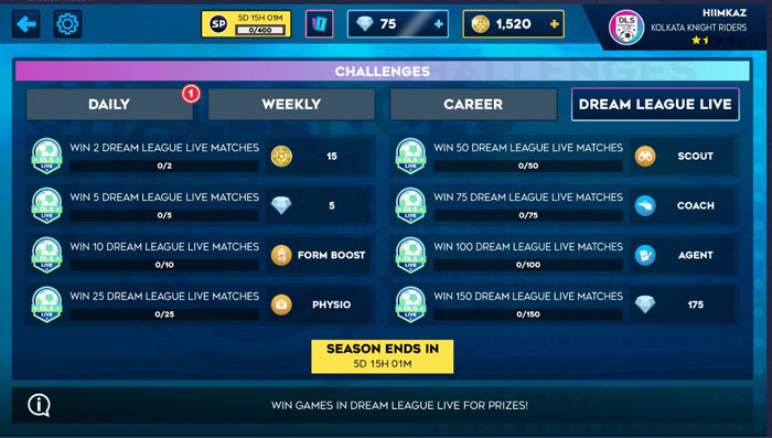 Tiền xu chủ yếu được kiếm được thông qua việc chơi trò chơi và hoàn thành các sự kiện khác nhau. Đá quý có thể kiếm được thông qua việc cạnh tranh trong Dream League và xếp hạng cao trên bảng xếp hạng. Mặc dù khá khó khăn nhưng nó sẽ đáng giá vì game thủ sẽ cần đá quý để nâng cấp các cơ sở vật chất của sân vận động.