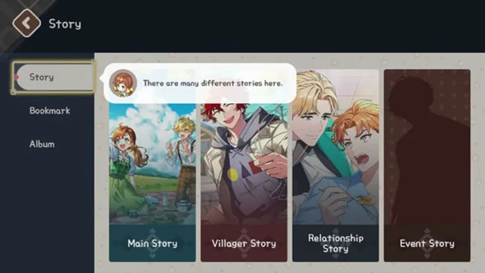 Câu chuyện chính có thể mở bằng cách hoàn thành các nhiệm vụ, trong khi 2 câu chuyện còn lại, cần tăng tình cảm của người dân trong làng để có được.