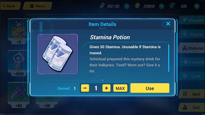 Ngoài ra, trong phần hướng dẫn, người chơi sẽ nhận thấy rằng đôi khi mình được thưởng Stamina Potion. Những thứ này có thể được giữ trong kho bao lâu tùy thích và chỉ mở chúng ra khi cần. Do đó, không có lý do gì để tiết kiệm Stamina, mà hãy sử dụng chúng bất cứ lúc nào.