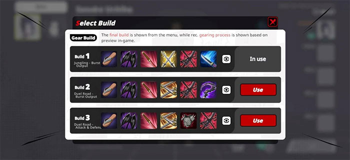 Vật phẩm chỉ có thể nhận được trong trò chơi, nhưng có thể tùy chỉnh cách xây dựng vật phẩm từ màn hình chính. Game thủ có tùy chọn làm theo các bản dựng vật phẩm được đề xuất hoặc tạo bản dựng độc đáo của mình. Điều quan trọng là kiểm tra và điều chỉnh cách xây dựng vật phẩm của nhân vật để phù hợp với phong cách chơi của mình và thích ứng với các tình huống trò chơi khác nhau.