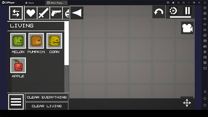 Điều đầu tiên cần làm trong Melon Playground chọn Living, nhân vật sẽ xuất hiện trên màn hình với 4 lựa chọn như sau: Melon, Pumpkin, Corn và Apple. Việc chọn một trong số chúng có thể được thực hiện bằng cách nhấp vào thanh menu từ phía bên trái màn hình của mình. Nếu đã chọn một Living, game thủ vẫn có thể thay thế bằng một Living khác bằng cách xóa mọi thứ và chọn lại.