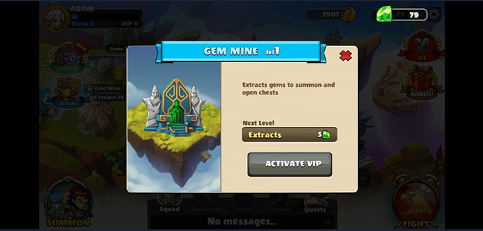 Gem là đơn vị tiền tệ chính trong Mighty Party và chúng chủ yếu được sử dụng để triệu hồi. Người chơi VIP có thể nhận thêm Gem thông qua mỏ, nhưng nếu không muốn mua tư cách thành viên thì vẫn có thể nhận Gem miễn phí mỗi ngày. Trên thực tế, mỗi người có thể nhận được 11 Gem/ngày và 100 Gem/tuần.