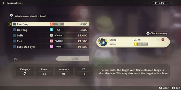 Shinx có một Move set tuyệt vời để mua, biến trở thành một Pokémon toàn diện. Đầu tiên, tiến hóa thành Luxio và đưa nó đến thị trấn để mua một số chiêu thức mới. Nó có thể học các biến thể lửa và băng trong đòn tấn công.