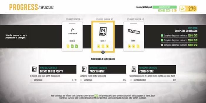 Người chơi nên tìm kiếm những nhà tài trợ cung cấp trang bị chuyên nghiệp ở hạng 1. Sau khi hoàn thành, trang bị sẽ được thêm vào kho đồ, giúp các cuộc đua tiếp theo dễ dàng hơn. Hoàn thành càng nhiều hợp đồng hàng ngày càng tốt và game thủ sẽ được trang bị đầy đủ mọi thiết bị cần thiết ngay lập tức.