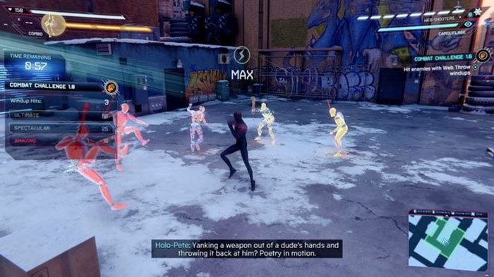 Những nhiệm vụ này đóng vai trò là hướng dẫn tốt cho các kỹ năng của Miles, nhưng chúng cũng mở khóa các khả năng độc quyền trong lần hoàn thành đầu tiên. Chúng bao gồm các công cụ hữu ích như Payback, cho phép ngay lập tức sử dụng Takedown lên kẻ thù nếu người chơi hoàn thành né đòn Perfect Dodge tấn công tầm xa của chúng. Để có được điều đó, tất cả những gì game thủ cần làm là hoàn thành khóa huấn luyện Combat Challenge 2.0 với xếp hạng Amazing (đồng).