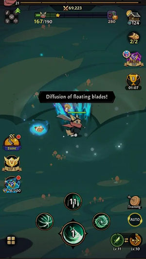 Trong Tailed Demon Slayer, có tùy chọn tự động chiến đấu mà game thủ nên dùng để chiến thắng đám đông một cách hiệu quả nhất. Trong khi trận chiến tự động diễn ra, game thủ có thể dễ dàng nâng cấp vũ khí, huấn luyện chỉ số cho cáo của mình và làm nhiều việc khác trong khi nhân vật miệt mài chiến đấu.