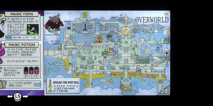 Một trang trong tập sách này có thể tương tác, đó chính là bản đồ thế giới. Mọi người có thể đi xung quanh khu vực xuất phát sau khi mở khóa thanh kiếm. Bản đồ này sẽ hiển thị nhân vật đang ở đâu dù biểu tượng con cáo có thể hơi khó nhìn.
