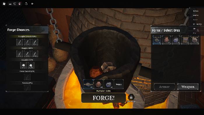 The Forge là một game hành động nhập vai trên Roblox, nơi người chơi phải tiến vào hang động để tìm kiếm các loại quặng hiếm nhằm chế tạo nhiều loại vũ khí và giáp khác nhau. Để rèn ra những món trang bị này, mọi người sẽ chơi một mini game gồm các bước: nung chảy quặng, đổ dung nham vào khuôn và tinh luyện để nhận sản phẩm cuối cùng.