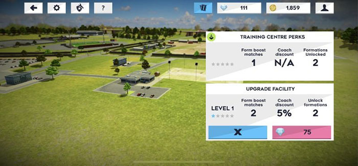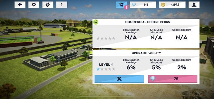 Hai địa điểm cần nâng cấp nhất là Sân vận động và Trung tâm huấn luyện. Và trò chơi vẫn còn lại 3 tòa nhà khác là Commercial Center, Medical Center và Accommodation.