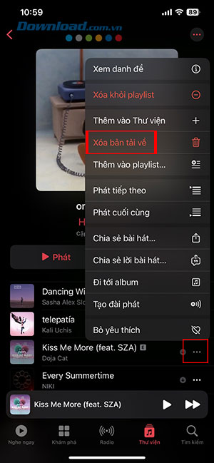 Điều quan trọng là phải kiểm tra các bản tải xuống thường xuyên để đảm bảo không giữ các tệp lớn. Trên Spotify hoặc Apple Music, mọi người có thể xóa bài hát và podcast khỏi nội dung tải xuống của mình bằng cách truy cập danh sách phát, nhấp vào ba dấu chấm và chọn Xóa bản tải về.