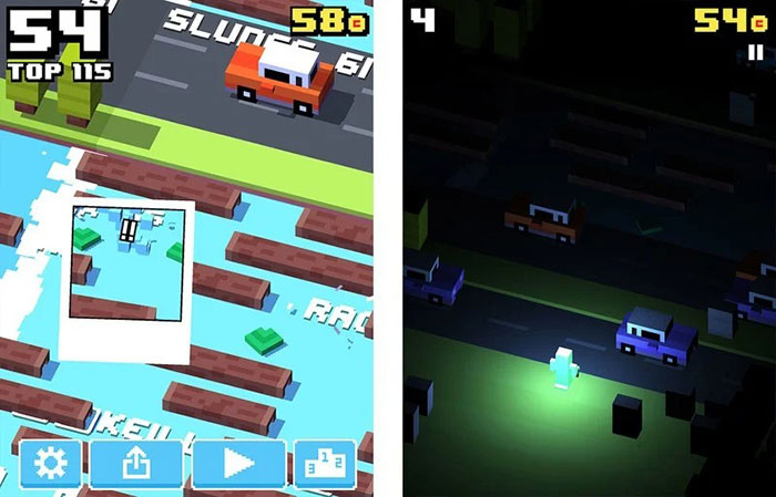 Crossy Road dễ dàng gây nghiện dù có lối chơi đơn giản, đưa chú gà qua đường, giống phong cách của Frogger nhưng với một chút thay đổi. Người chơi có thể thu thập quà tặng miễn phí dưới dạng tiền xu và nhân vật mới.