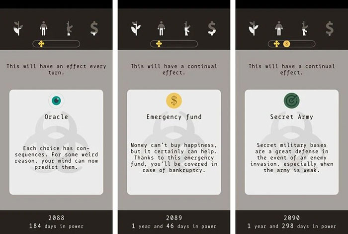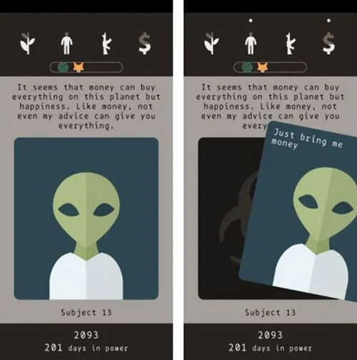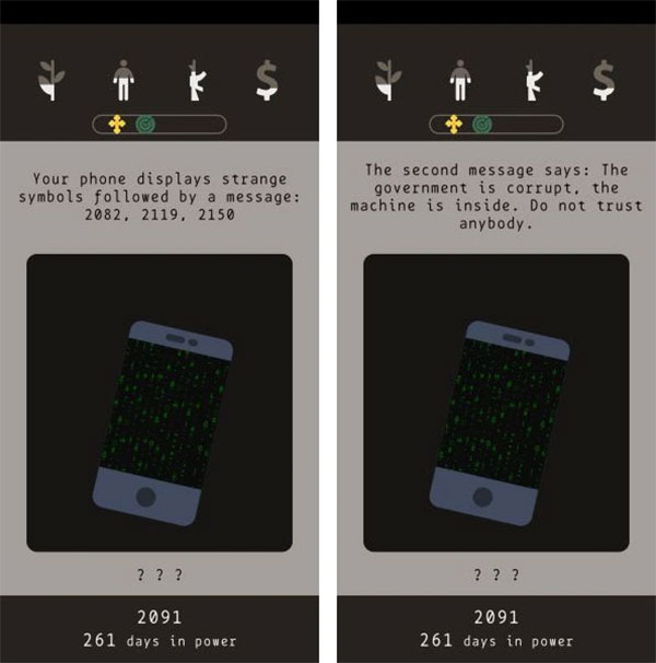 Trò chơi liên tục qua lại, vuốt sang trái hoặc vuốt sang phải để đưa ra quyết định, và trong cuộc đấu tranh để giữ cho người dân hạnh phúc, game thủ sẽ đối phó với rất nhiều nhân vật. Những quyết định được đưa ra ảnh hưởng đến toàn bộ thế giới hậu tận thế này và tương lai của nó.