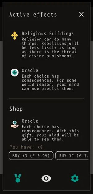 Trò chơi có một cửa hàng để mua một số boost. Nếu đã xử lý đủ các yêu cầu của mọi người và muốn vượt qua trò chơi dễ dàng hơn, hãy đến cửa hàng để có thể nhận được lời tiên tri giúp ích trong các quyết định của mình, thêm trái tim để thoát chết sớm hoặc cỏ bốn lá để cầu may mắn.