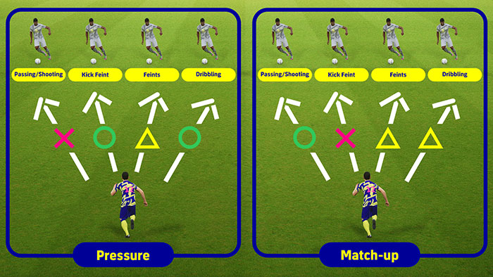 Khi phòng thủ trước một cầu thủ rê bóng đang lao tới, các hậu vệ sẽ cố gắng giữ vị trí thích hợp giữa đối phương và khung thành. Với Match-up, giờ đây người có thể buộc cầu thủ của mình làm điều tương tự trong trò chơi. Phối hợp giúp cầu thủ dễ dàng chặn các đường chuyền và cú sút sắp tới hơn, do đó giúp ích rất nhiều cho việc có được một hàng phòng ngự tốt.