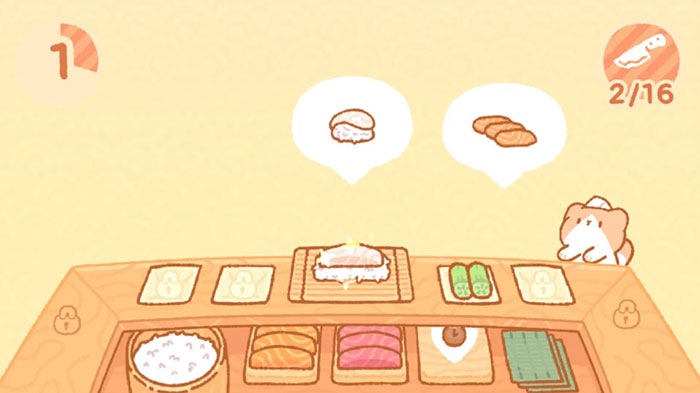 Mini game nấu ăn của Kuma Sushi Bar sẽ rất thú vị nếu người chơi biết đúng nguyên liệu và thứ tự để đặt các đĩa. Có 2 cách để phục vụ đồ ăn là tiếp cận khách hàng và đặt vào đĩa thức ăn theo cách thủ công.