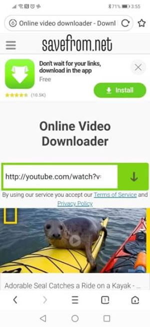 Bước 4: Bắt đầu quá trình tải xuống. URL từ video đã được chuyển đến Savefrom.Net. Sau đó chạm vào mũi tên tải xuống.