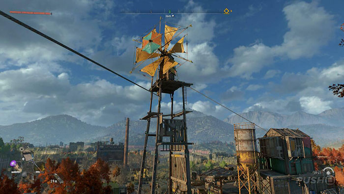 Khi đã lạc lối trong thế giới mở, một cách để có được trải nghiệm parkour dễ dàng là leo lên mọi thứ xung quanh mình. Từ chiếc cột gắn vào bên hông của ngôi nhà đổ nát, đến cấu trúc dây bấp bênh nối hai tòa tháp.